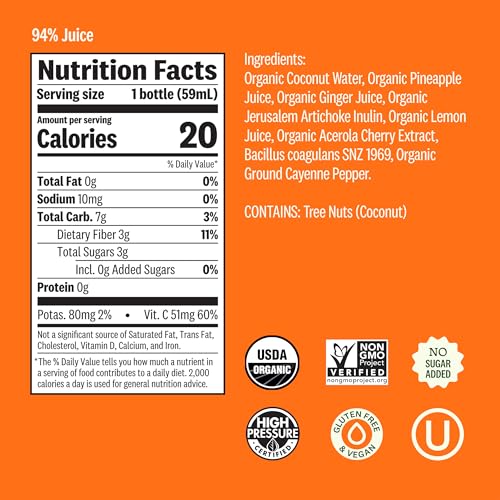 Specification: Suja Organic Digestion Shot with Ginger, Apple Cider Vinegar and Ginseng, Immunity Support, Functional Shot, Cold-Pressed Juice with Live Probiotics, Plant-Based & Gluten-Free (2 Fl Oz)