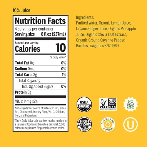NUTRIENT BOOST: Made with ingredients like organic lemon juice, organic ginger juice and organic pineapple juice for an excellent source of vitamin C