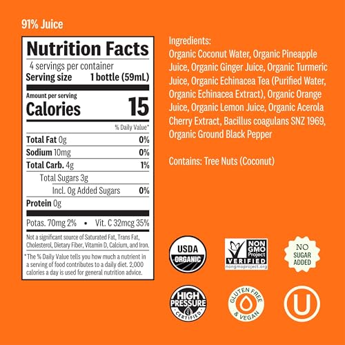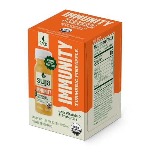 Specification: Suja Organic Immunity Defense Shot (2 Fl Oz x 4 Count) with Turmeric and Ginger | Immunity Boost & Support | Functional Shots | Cold-Pressed Juice with Live Probiotics | Plant-Based & Gluten-Free