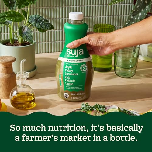 Specification: Suja Organic Mighty Dozen Cold Pressed Juice Drink, With Apple, Celery, Cucumber, Kale and Collard Greens, 46 fl oz Bottle