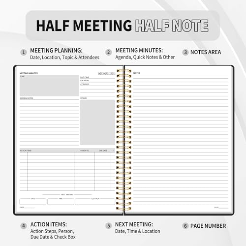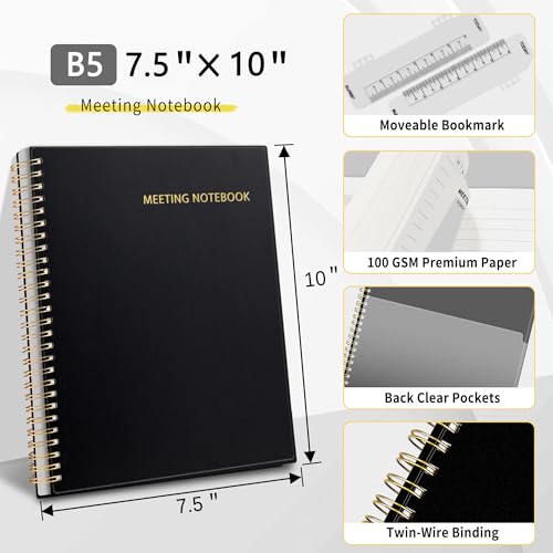 Specification: SUNEE Half Meeting Half Note – 7.5″x10″ Professional Notebooks for Work – 160 Pages, B5 Size Project Planner, Spiral Meeting Agenda/Minutes Organizer for Women Men, Note Taking, Office & Business