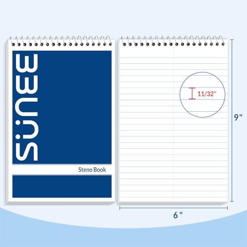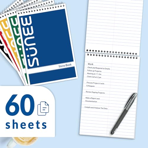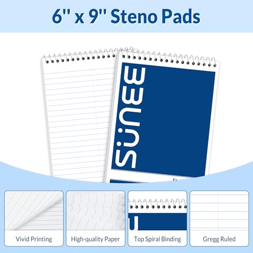 Specification: SUNEE Steno Pads 6×9 5 Pack, Gregg Rule, 60 Sheets, White Paper, Take Notes with Top Spiral Notebook, for School, University, College, Work, Office, Classic Color