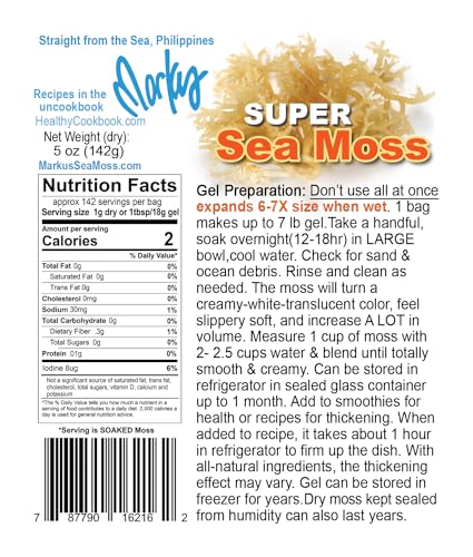 Harvested right from the clean ocean in the Philippines far from civilization, this sea moss has been cleaned multiple times and dried so its much cleaner than most brands. When soaked in cold water overnight, it expands many times its size. One 3.5 oz bag can produce over 7 lbs of gel! Also called irish Moss or Sea Moss, or by its botanical name Gracilaria, is wild-crafted and truly raw, dried in the natural sun right after harvesting. It is loaded with minerals, vitamins and protein building blocks to help the body make collagen. See our preparation and recipe videos. Sea Moss can also be creatively used in skincare routines, such as in homemade face masks. It’s even featured in some of the recipes in our vegan cookbook, “Love on a Plate,” showcasing its culinary flexibility. Rich in minerals and traditionally valued in various cuisines, our Sea Moss is the genuine, unprocessed variety, distinct from dried powders or flakes. It’s a wonderful ingredient for crafting not only delightful desserts but also for experimenting with homemade beauty treatments.