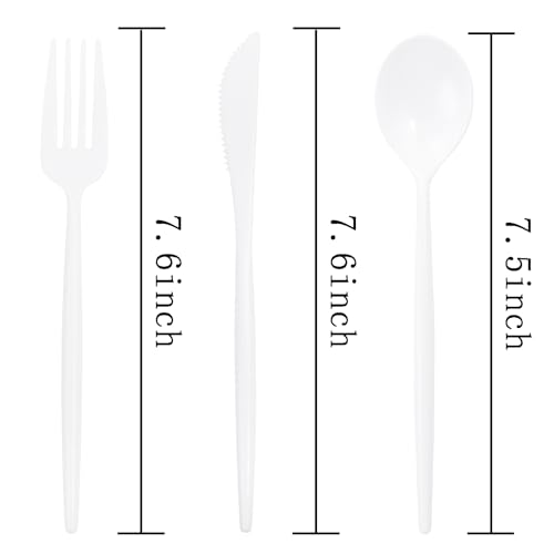 [Durable Plastic Silverware]-White plastic silverware include 7.6 inch 60 forks,7.6 inch 60 knvies,7.5 inch 60 spoons which are made of strong and durable plastic.