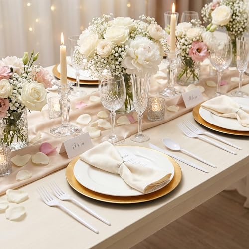 [Easy To Clean]-If you want to have more time to enjoy the party, you can throw away the white plastic silverware after the event, or you can hand wash the durable plastic silverware for next time.
