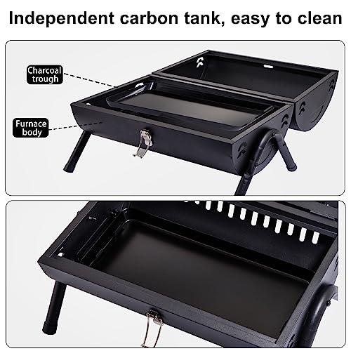 Supernal Portable Charcoal Grill,Tabletop Charcoal Grill,BBQ Grill for Outdoor Cooking Camping,Picnics,Backyard,Balcony-Black,2 Carbon Tank,2 Baking Net,1 Baking Pan