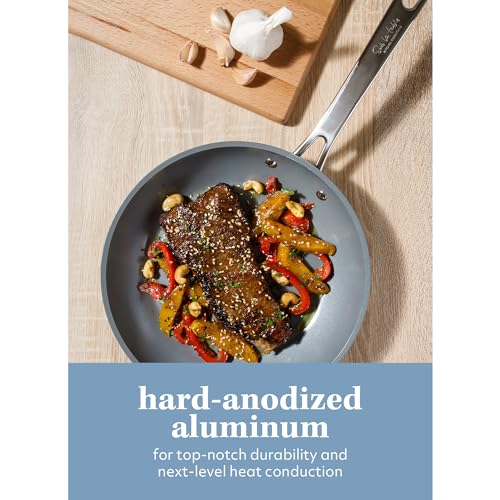 More than the delicious flavors in any dish, it’s the communal experience of dining that makes a recipe truly unforgettable. As family and friends gather around the table, sharing memories over a spread of sides, mains, and desserts becomes the highlight of any get-together. The Cool Commune Ceramic Nonstick Hard-Anodized Aluminum Cookware Collection is inspired by the joy and togetherness of dining and entertaining. This suite of forged, hard-anodized aluminum pots and pans emphasizes durability for everyday cooking. Hard-anodized aluminum is tougher than traditional aluminum, making it resilient enough to withstand the demands of daily use. Whether you’re enjoying a leisurely cooking experience or preparing a meal in a fast-paced setting, this cookware set ensures even cooking every time.