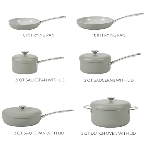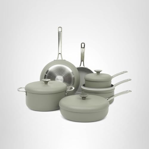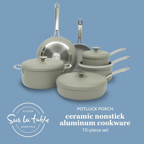 Specification: Sur La Table Kitchen Essentials Potluck Porch 10 Piece PFA Free Ceramic Non stick Interior Forged Aluminum Cookware Pots and Pans Set W/Aluminum Lids – Green – Induction Compatible