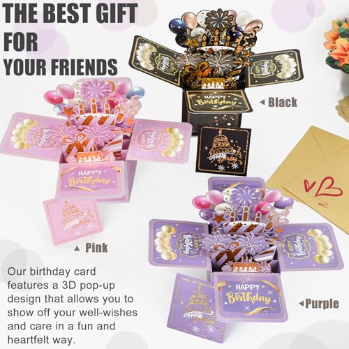 Surprise Pop Up Happy Birthday Cards, Lovely 3D Birthday Card for Adults and Kids with Envelopes, Unique Design Handmade Foldable Greeting Cards for Daughter, Son, Mom, Dad, Friend(Black)