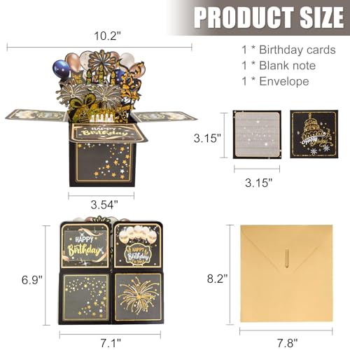 Specification: Surprise Pop Up Happy Birthday Cards, Lovely 3D Birthday Card for Adults and Kids with Envelopes, Unique Design Handmade Foldable Greeting Cards for Daughter, Son, Mom, Dad, Friend(Black)