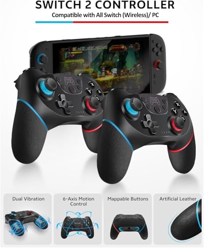 Pro-Level Controller: Ergonomic design with dual vibration, 6-axis motion control, turbo mode, and customizable buttons. Features sweat-resistant leather grip for comfort and instant wireless connectivity for lag-free gaming.