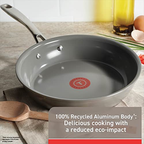T-fal Ceramic Non-Stick Induction, 10.5 and 12 Inch 2 piece Frypan Set, Stone Grey