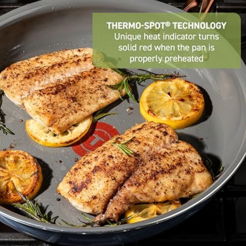 𝐔𝐥𝐭𝐢𝐦𝐚𝐭𝐞 𝐂𝐨𝐧𝐯𝐞𝐧𝐢𝐞𝐧𝐜𝐞: Oven-safe up to 350°F. Features an even heat base that prevents hot spots and is compatible with all cooktops, excluding induction. Thermo-Spot technology indicates when the pans are perfectly preheated to start cooking. Limited lifetime warranty