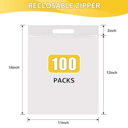 Specifications: 100 packs 11*14 inches shirt bags with handle and zipper, allowing easy access to the bags’ contents