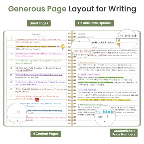 Customizable Pages & Table of Contents: Includes 4 table of contents pages to keep your notes organized and easy to reference. Contains 50 sheets/100 lined pages that allow you to write on both sides, each page allows you to customize page numbers and dates, making it the ultimate notebook for you.
