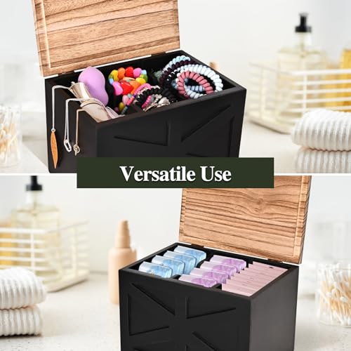 Tampon holder for bathroom,Feminine Product Organizer With Lid,Tampon storage(Black)