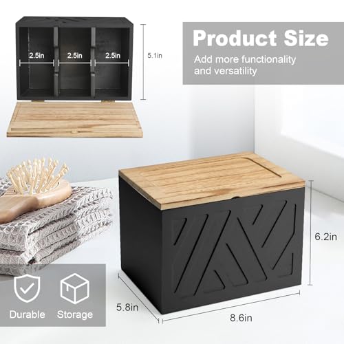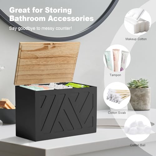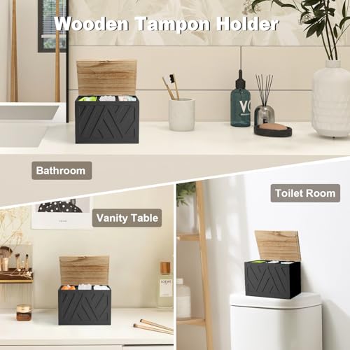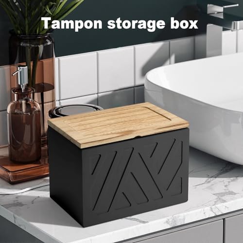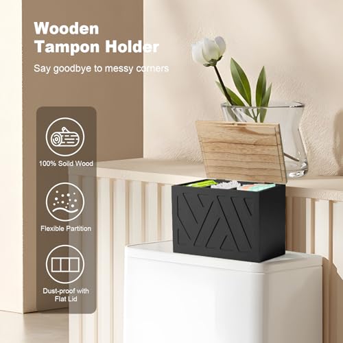 Specification: Tampon Holder for Bathroom, Feminine Product Organizer, Pad Organize Case with Lid, Shark Week Wooden Tampon Storage Decor, Lady Girl Stuff Box for Toilet Bathroom Accessories- Black