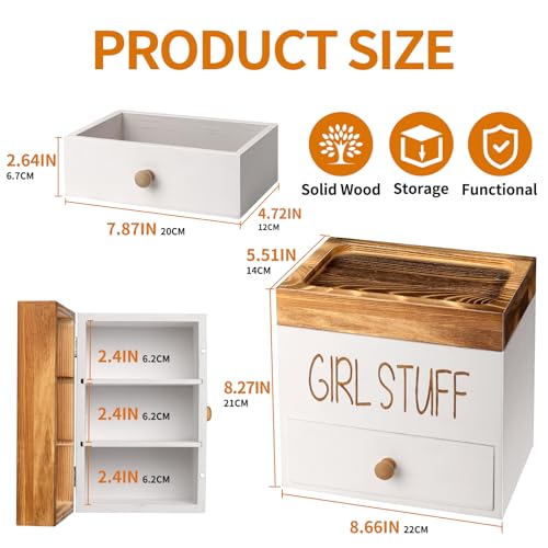 Specification: Tampon Holder for Bathroom, Feminine Product Organizer Wood Pad and Tampon Container Storage Box with Drawer for Shark Week Girl Stuff – White