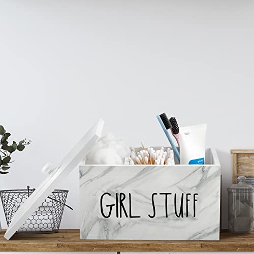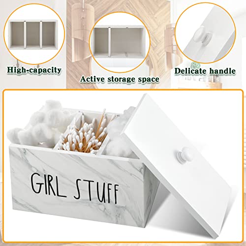 Tampon Holder for Bathroom with Movable Dividers Shark Tampon Storage Container Week with Lid Farmhouse Pad Container Box Feminine Product Organizer Girl Stuff Box for Bathroom(Marble Style)