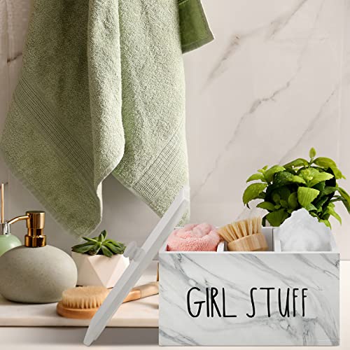 Specification: Tampon Holder for Bathroom with Movable Dividers Shark Tampon Storage Container Week with Lid Farmhouse Pad Container Box Feminine Product Organizer Girl Stuff Box for Bathroom(Marble Style)