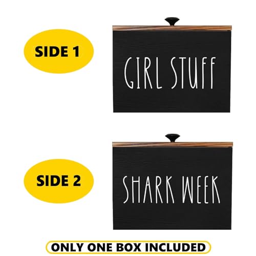 Specification: Tampon Holder for Bathroom,Farmhouse Bathroom Organizer,Rustic Wood Bathroom Storage Bin with Lid,Wood Movable Partition Feminine Product Organizer with Lid,Bathroom Accessories Box (Black wood)