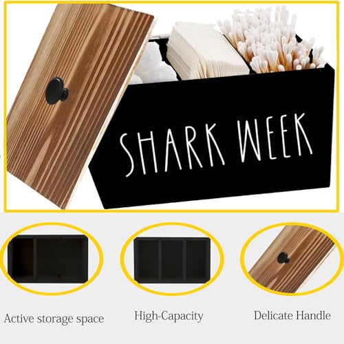 Tampon Holder for Bathroom,Farmhouse Bathroom Organizer,Rustic Wood Bathroom Storage Bin with Lid,Wood Movable Partition Feminine Product Organizer with Lid,Bathroom Accessories Box (Black wood)
