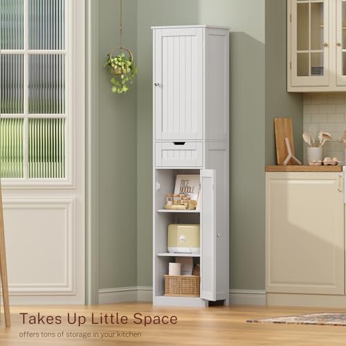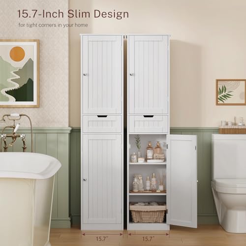 TEENFON 67″ H Tall Bathroom Cabinet with 2 Doors & 1 Drawer, Narrow Bathroom Storage Cabinet with Adjustable Shelves, for Living Room, Entryway, Kitchen, White
