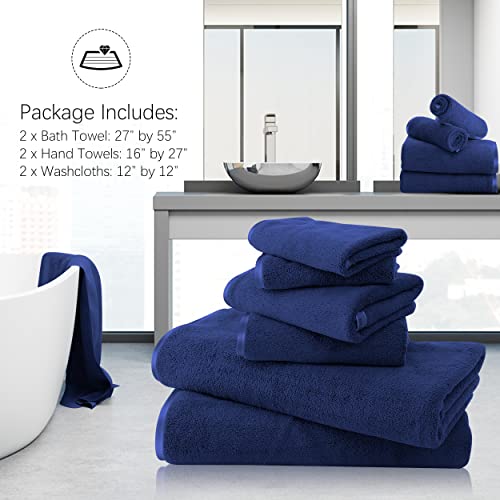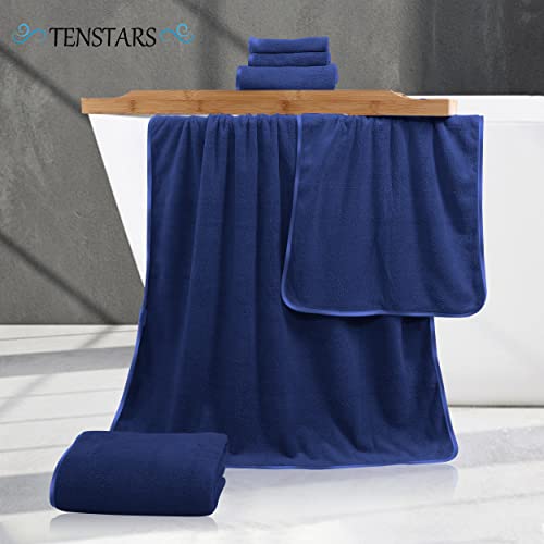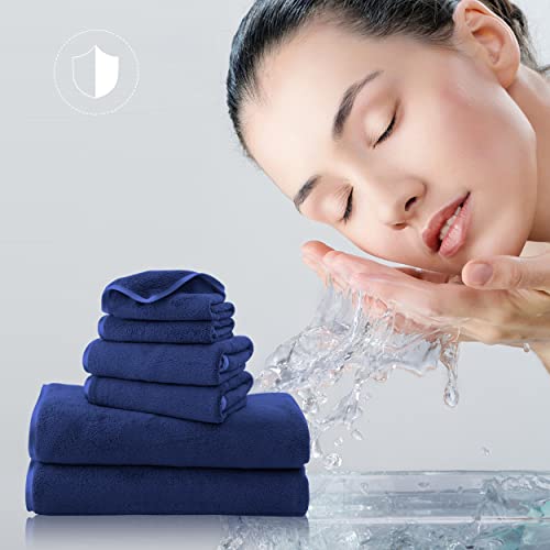 TENSTARS Luxury Silk Hemming Towel Set – Light Thin Quick Drying – 2 Bath Towels 2 Hand Towels 2 Washcloths – Ultra Soft Microfiber Towel for Bath Fitness, Sports, Yoga, Travel (Navy Blue 6 Pieces)