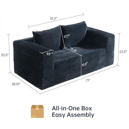 Specification: TeQsli Loveseat Sofa, 71″ Foam Sofa in a Box, Plush Corduroy Deep Seat Couch, No Assembly Needed, Modern Sofa for Compact Living Rooms, Apartments, and Offices