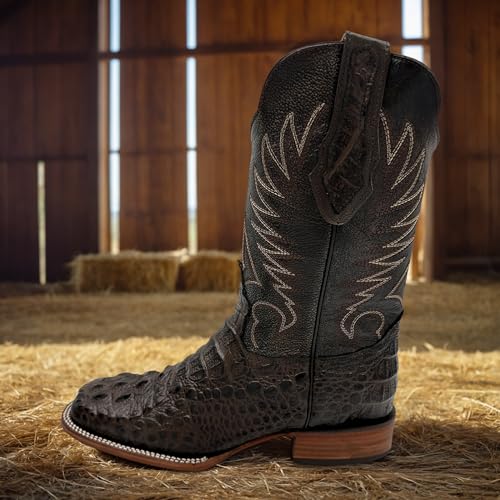 Specification: The Western Shops Mens Leather Square Toe Cowboy Boot Embossed Crocodile Alligator Print Western Boot