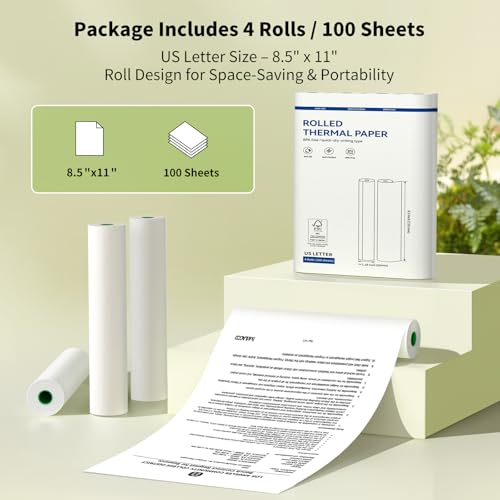 Specifications: Package includes 4 rolls of Gloryang thermal paper, 100 sheets in total, each roll contains 25 sheets, each in US Letter size (8.5” x 11”). The roll design saves space and makes printing more convenient, allowing you to print anywhere. Please note that it is specifically designed for use with letter-sized thermal printers and is not compatible with laser or inkjet printers.