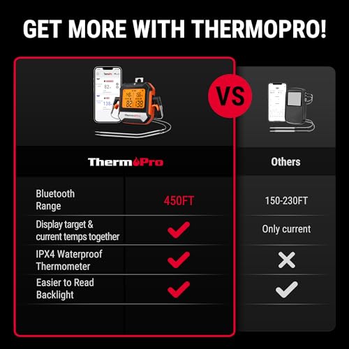 Specification: ThermoPro 450 ft Bluetooth Meat Thermometer with 2 Probes, Meat Thermometer Digital Wireless for BBQ Oven, Smoker Thermometer for Cooking Chicken Steaks Poultry