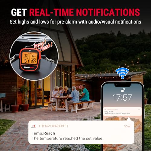 Smart App: Easily program the USDA preset meat temperatures & custom your doneness level with the Thermopro BBQ App; Set a suitable temperature range to keep your smoker cooking with the optimal fuel; Track data graphs when cook with this grill thermometer
