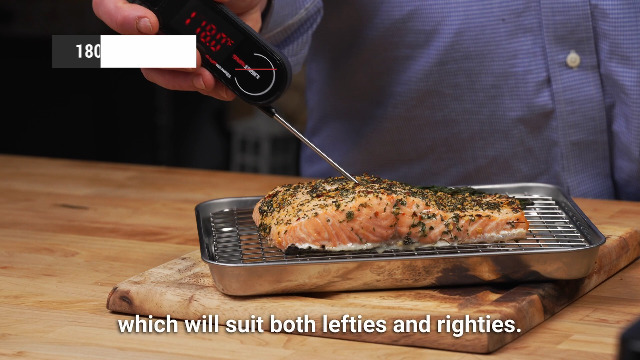 【Easy to Read】Large luminous digits and 180° auto-rotating ambidextrous backlit display make this kitchen thermometer easy to read both day and night; the ability to use it at any angle makes it convenient for left- and right-hand users alike