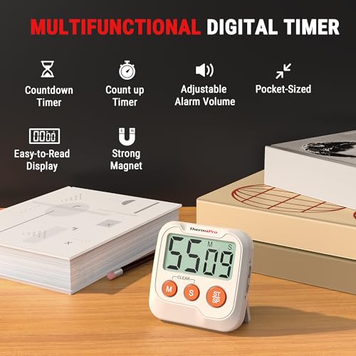 Specification: ThermoPro TM03 Digital Timer for Kids & Teachers, Kitchen Timers for Cooking with 2-Level Alarm Volume, Countdown Timer Stopwatch for Classroom Supplies, Exercise, Baking, Playtime or Work, 2-Pack