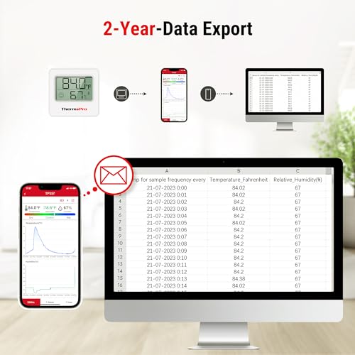Smart App with Alerts: Set a temperature gauge range via the ThermoPro Sensor and instantly receive a phone notification if the temp and humidity monitor levels fall outside of your range, allowing you to quickly react to make necessary adjustments; Have a private and secure App! ThermoPro App do not register user information, which further protects user privacy