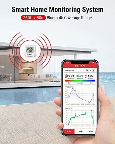 Specification: ThermoPro TP357 Digital Hygrometer Indoor Thermometer of 260FT, Bluetooth Thermometer Humidity Meter with Smart App, Room Thermometer Humidity Gauge with Temperature Humidity Sensor