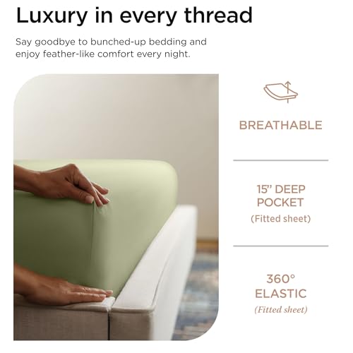 Specification: Threadmill 100% Cotton Sheets for Twin XL Size Bed – 600 Thread Count Twin XL Bed Sheets Set with 15” Deep Pocket – Sateen Weave 3-Piece Bedding Set with Cooling Effect, Sage Green