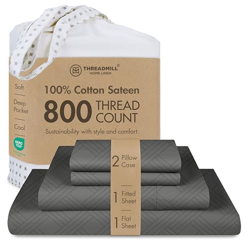 Specification: Threadmill Luxury 100% Cotton Queen Bed-Sheets – 800 Thread Count Jacquard Celine Dark Grey, Better Than Egyptian Cotton,4 Pc Striped Bed Set, Damask Sheets with Elasticized Deep Pocket