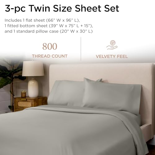 Threadmill Luxury 800 Thread Count Twin 100% Cotton Sheets – Moonrock Grey Sateen Weave Bed-Sheets, Better Than Egyptian Cotton,3 Pc Solid Soft Bedding Set, Fits 15″ Deep Pocket