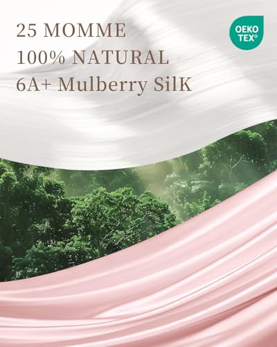 100% Pure Mulberry Silk 25 Momme – Compared to 19 Momme, 25 Momme silk has almost 30% more silk per square inch. That results in a more durable, longer lasting silk. Silk’s natural properties help to keep skin moisturized and hair smooth