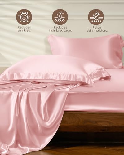 Specification: THXSILK 4pcs Silk Bed Sheets Set, 100% Long Stranded 25 Momme Mulberry Silk Bedding Set, Sheets and Pillowcase Set, Extremely Soft and Luxurious (Charming Pink, King)