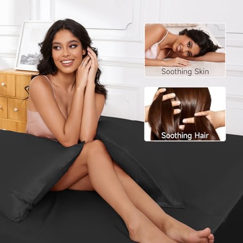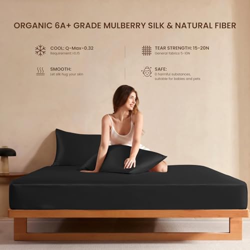 Specification: THXSILK Luxury Mulberry Silk Bed Sheets Set – 4pcs Silk Sheets Set 16″ Deep Pocket – 1 Fitted Sheet, 1 Flat Sheet, 2 Pillowcases with Zipper Closure – Full, Black