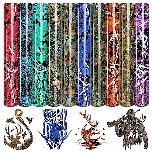 【Different Designs & Mutil-Color】This Real Tree Camo Heat Transfer Vinyl Set Include 10 Sheets with Different Colors and Designs , Enough Quantities for You to Create Your Diy Crafts