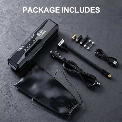 【Dual Charging & Multifunctional Use】Features both USB-C charging and 12V DC car adapter options, fully charged in just 3 hours. Can also serve as an emergency power bank to charge your phone. Includes multiple nozzle adapters for versatile use.