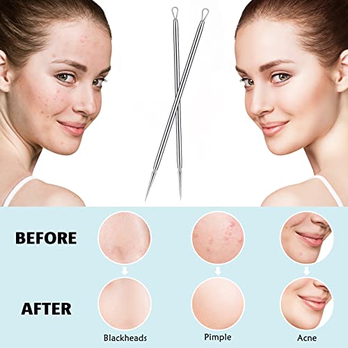 2 In 1 Design: the pointed pimple extractor tools adopt a 2 in 1 design, and comes with a pointed tip and a round hoop at the end, easy for you to use in different cases, no need to search for another hoop or needle