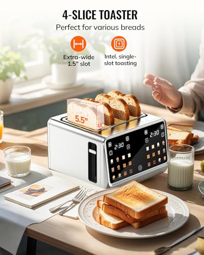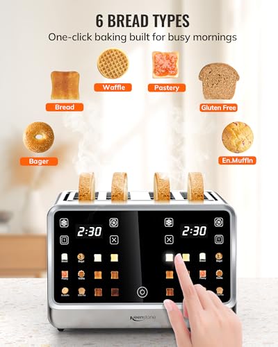Specification: Toaster 4 Slice with TouchScreen, Memory Function & Single-Slot Focus, Keenstone 1800W Smart Digital Toaster for Ultimate Control, Wide Slot to Reheat & Defrost Bagels, Bread, Waffles, Stainless Steel