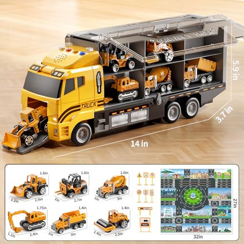 Specification: Toddler Boys Construction Truck Vehicle Toy Set with Play Mat and Die-Cast Toy Car, Transport Carrier Truck for Kids 3-5, Birthday Gifts Toys for 3-8 Year Old Boys