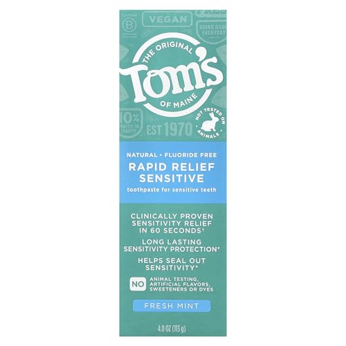 HELPS PREVENT TARTAR BUILDUP: Tom’s of Maine Natural Rapid Relief Sensitive Fluoride-Free Toothpaste protects and relieves sensitive teeth. Our formula provides long-lasting protection and relief in 60 seconds. To achieve rapid relief, apply this sensitive toothpaste directly to the sensitive tooth with your fingertip or toothbrush, then gently massage it for 1 minute.