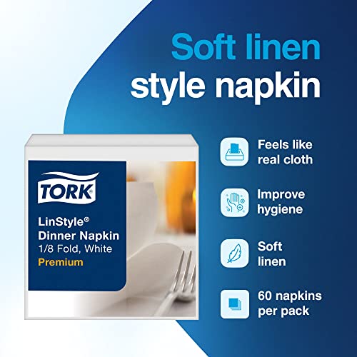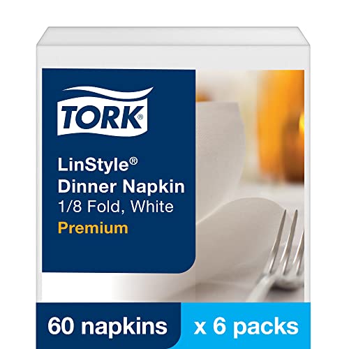 Tork Napkins 1-Ply LinStyle Dinner Napkins 1/8 Fold, White For Everyday Use at Home Fully Compostable Paper 16.25×17″ (WxL), 60 Napkins/Pack, 6 Packs/Case